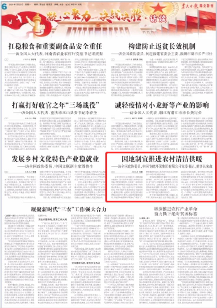 16.农民日报:因地制宜推进农村清洁供暖——访全国政协委员,中国节能环保集团有限公司党委书记、董事长宋鑫