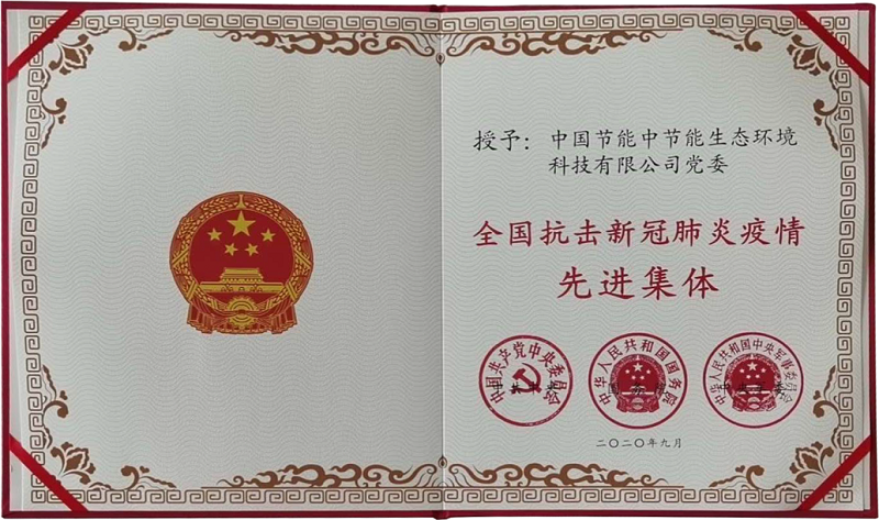 中国节能下属中节能生态环境科技有限公司荣获全国先进集体,中节能生态环境科技有限公司党委荣获全国先进基层党组织。