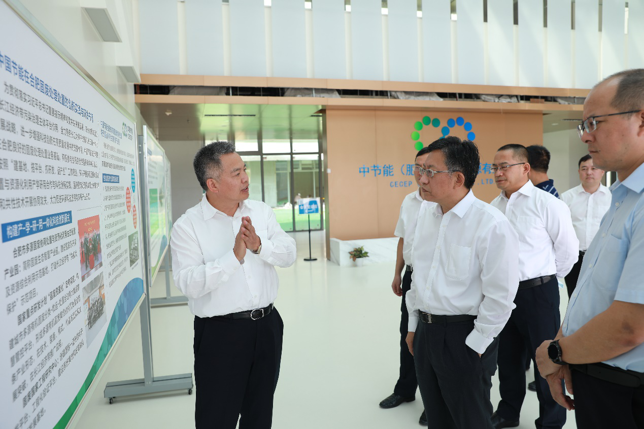 在肥期间,宋鑫一行实地考察了在建的中节能肥西环保产业示范园,重庆公司下属加油站、加气站项目,听取了各公司关于项目建设、企业经营、提质增效、安全环保等方面的工作汇报。他表示,肥西环保产业示范园要进一步提升多源有机固废集约化协同处置能力,创新技术与运营管理模式,高标准打造可复制、可推广的中国节能固废处理3.0版本;重庆公司的加油、加气站经营方式与经营绩效等工作值得充分肯定,要不失时机,规范凝炼管理规则,大力开发新项目,扩大经营规模,提高经济效益,走出一条“油气电氢”多能互补的城市能源供给商业新路。