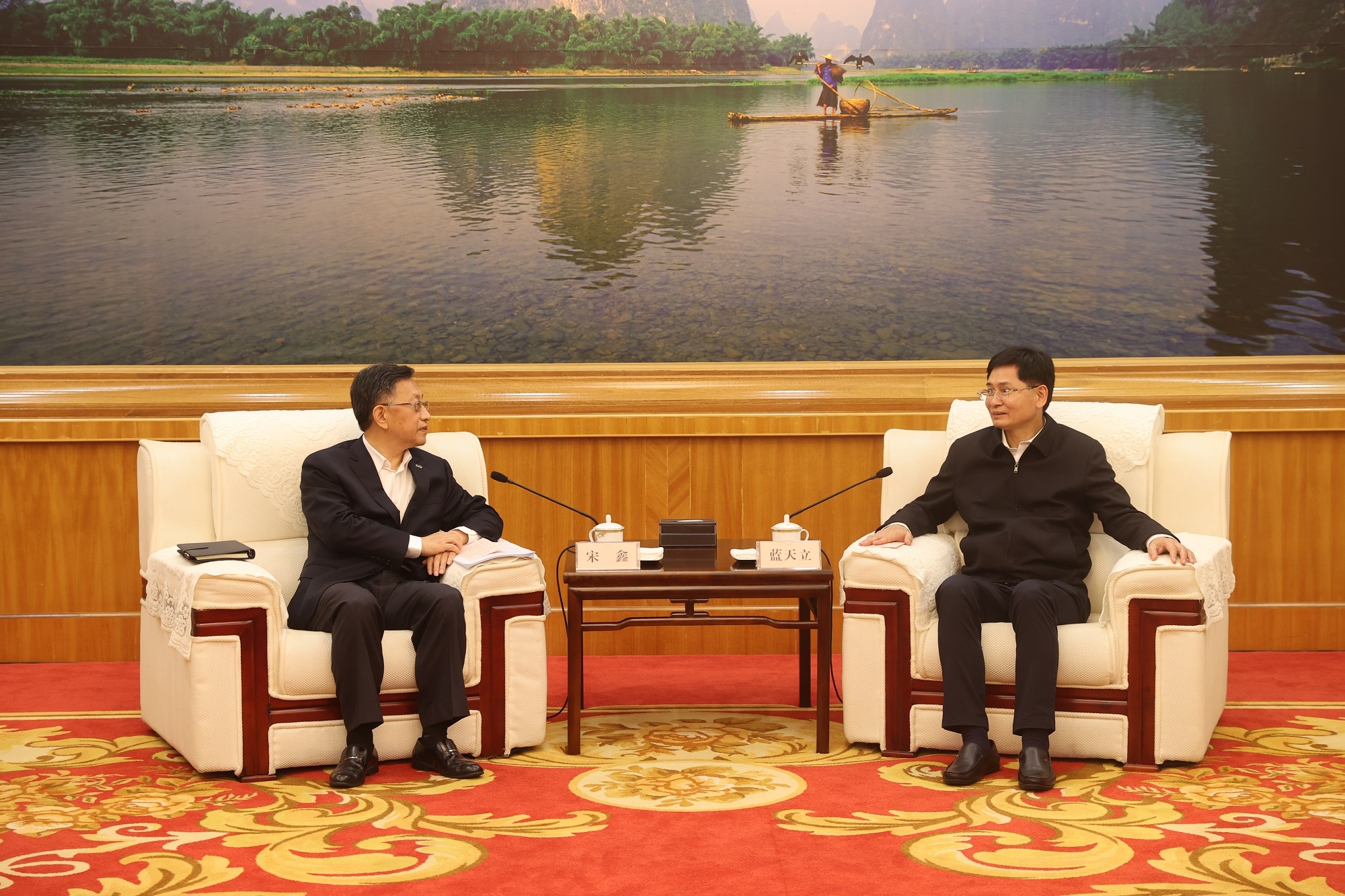 11月16日,集团公司党委书记、董事长宋鑫赴邕拜会广西壮族自治区党委副书记、自治区人民政府代主席蓝天立,并共同见证双方战略合作协议签约仪式。集团公司副总经理刘大军、自治区副主席费志荣分别代表双方签署协议。