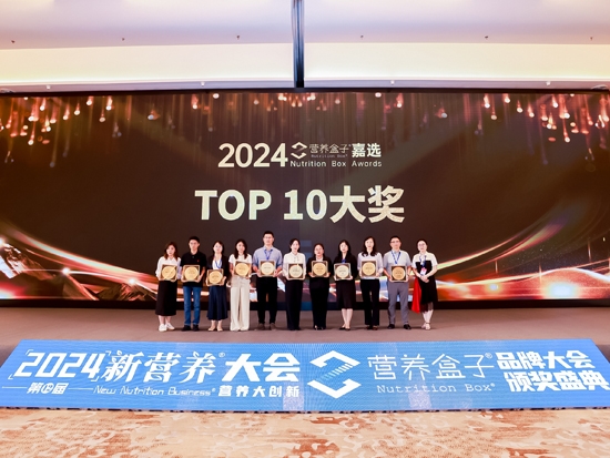 6月5日,“营养大创新”2024年第十二届新营养大会暨“营养盒子”颁奖盛典在杭州召开,健康产业公司丹凤水光臻TM双肽风味饮品荣获“2024营养盒子嘉选•TOP10大奖”。