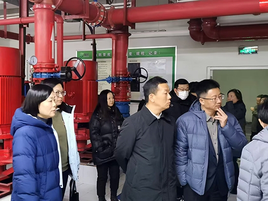 刘昱廷一行检查了健康产业公司总部园区直燃机系统、电梯机房、消防控制室、消防水泵房、实验室等现场管理情况,详细查看消防设备设施运行,问询现场人员安全操作流程和事故应急处置等情况。