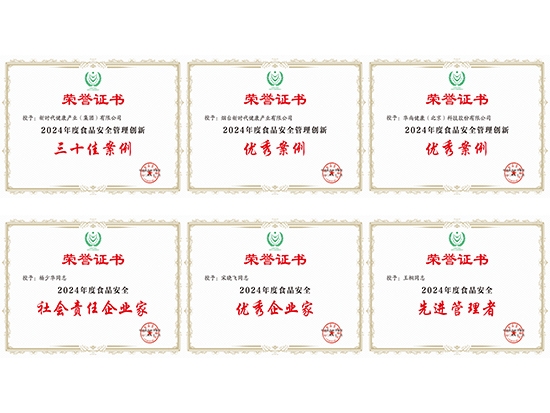 会上,健康产业公司获得多项荣誉。健康产业公司入选“2024年度食品安全管理创新三十佳案例”,健康产业公司所属华尚健康、烟台健康公司入选“2024年度食品安全管理创新优秀案例”,健康产业公司副总经理杨少华荣获“2024年度食品安全社会责任企业家”称号,烟台日化公司执行董事宋晓飞荣获“2024年度食品安全优秀企业家”称号,烟台健康公司总工程师王桐荣获“2024年度食品安全先进管理者”称号。