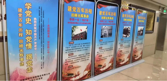 用活阵地,着力拓宽学习覆盖面。新时代集团各级党组织积极利用宣传板、教育活动室等宣传阵地,通过线上、线下及时推送党史内容,努力拓宽党史学习覆盖面,营造了浓厚的党史学习教育宣传氛围。