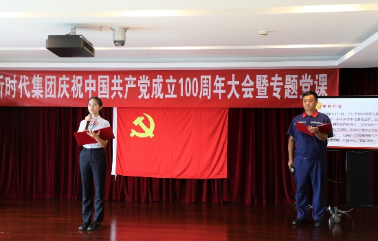 在中国共产党百年华诞来临之际,为庆祝中国共产党成立100周年,深入开展党史学习教育,讴歌中华民族实现伟大复兴的百年历程,砥砺奋斗精神,大力弘扬新时代优秀党员干部先锋模范精神面貌,以优异成绩献礼建党百年华诞。6月30日,新时代集团召开庆祝中国共产党成立100周年大会,公司领导班子成员,各子公司领导班子成员、中层以上干部,以及全体党员和入党积极分子共计230人参加了会议,会议由党委副书记、总经理李喜联主持。