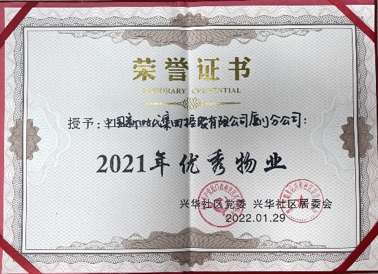 1月29日,湖里区兴华社区召开表彰会,厦门分公司被评为“2021年优秀物业”。