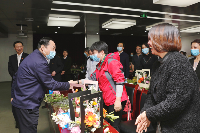 调研中,适逢三八国际妇女节,郝鹏看望慰问了正在听插花讲座的企业女职工,向大家致以节日的祝贺和美好的祝福。